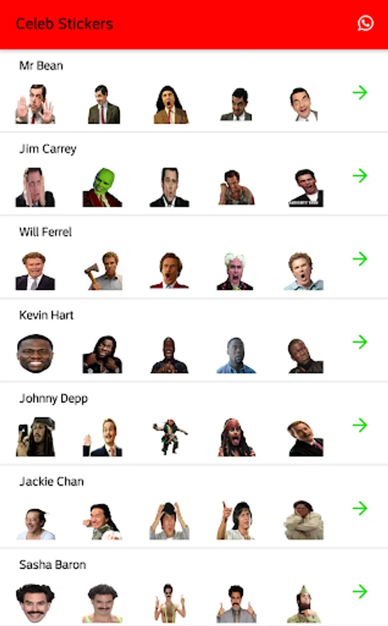 This app contains hundreds of funny Celebrities Stickers. You can send these stickers to your friends on WhatsApp.