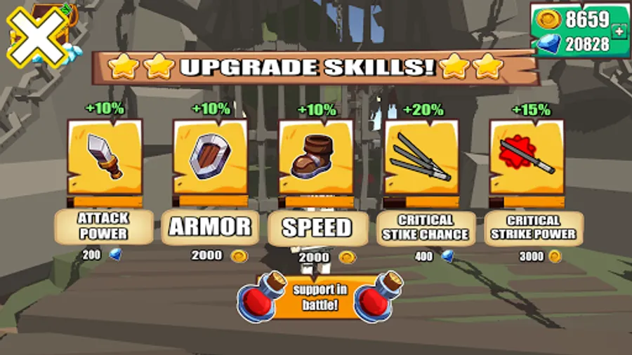 for the gold you mine, pump basic skills, deal damage, run, defend.