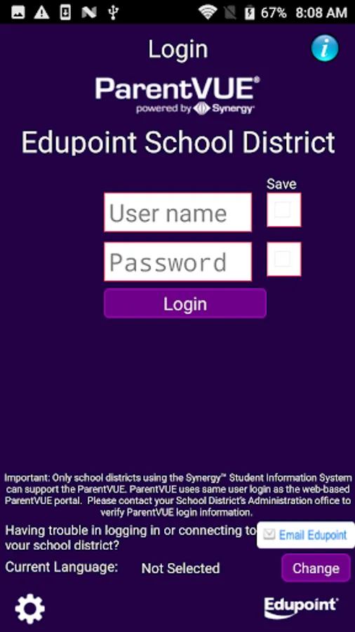 • Only school districts using the Synergy™ student information system version 6.5 and higher can support the ParentVUE for the Android phones application.