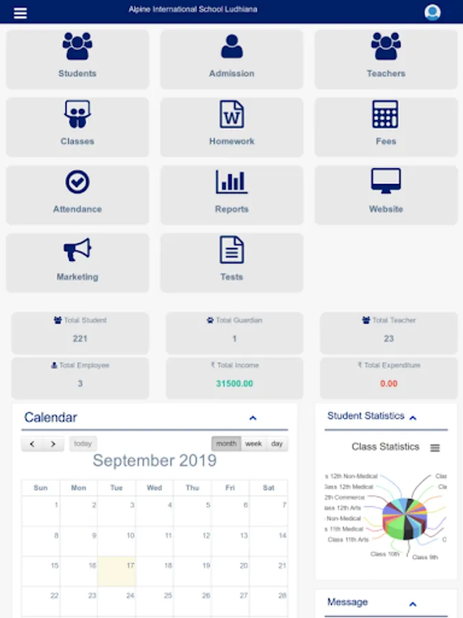 - Fee Management: Complete Fee Management solutions. Automatic SMS send to parents on fee submission. Automatic send SMS to all pending students.