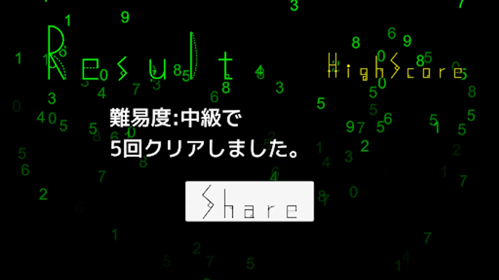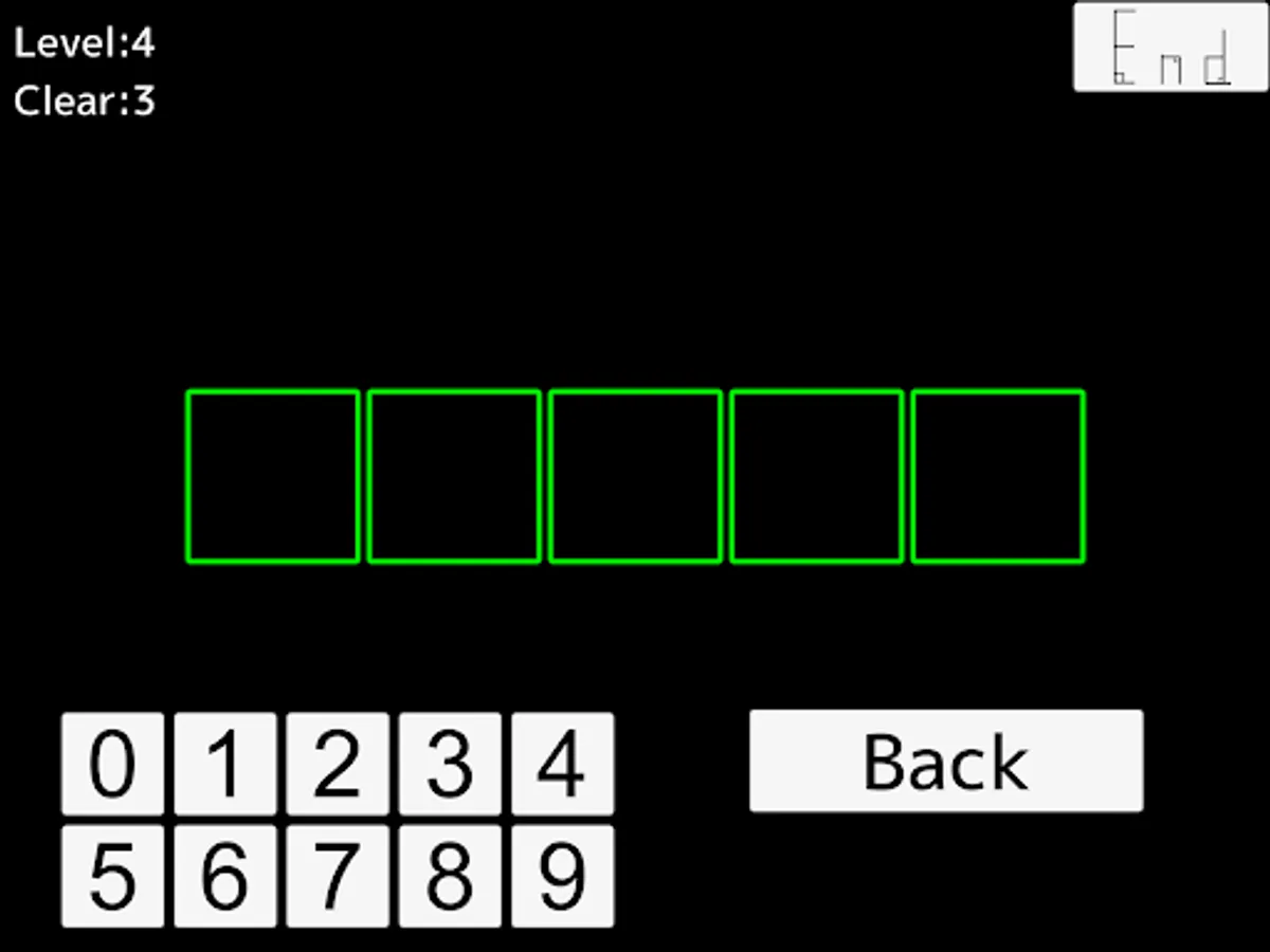 It is a game to memorize and input the numbers displayed on the screen only for a moment. As you continue to answer correctly, the time displayed will decrease little by little. The game continues until you make a mistake.