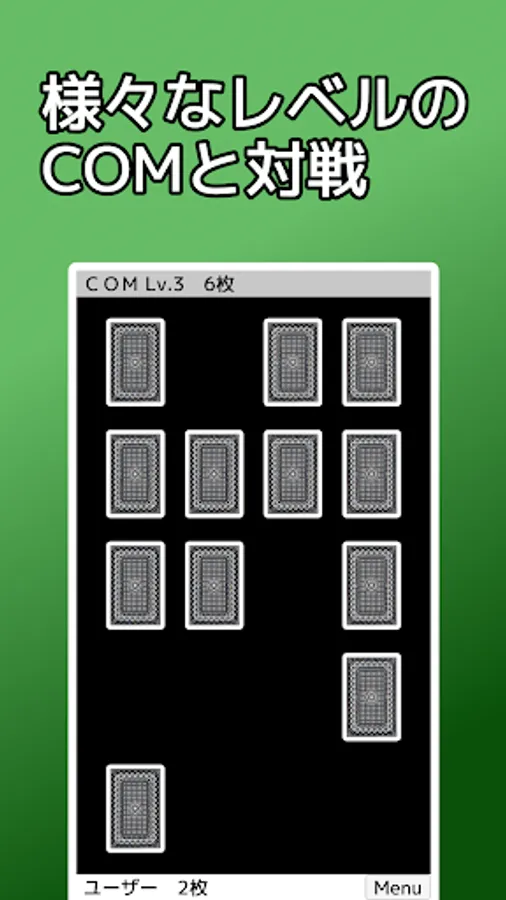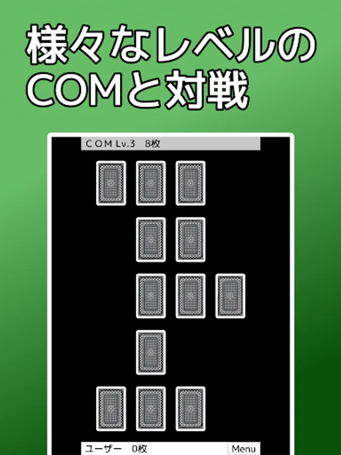 There are several levels available for playing against the computer, so please play at the level that suits you. The highest level is for people who can memorize all the cards.
