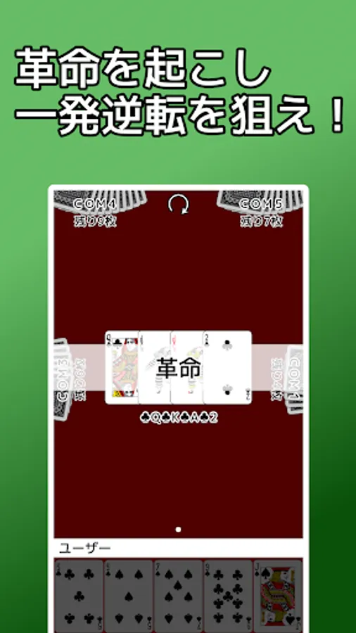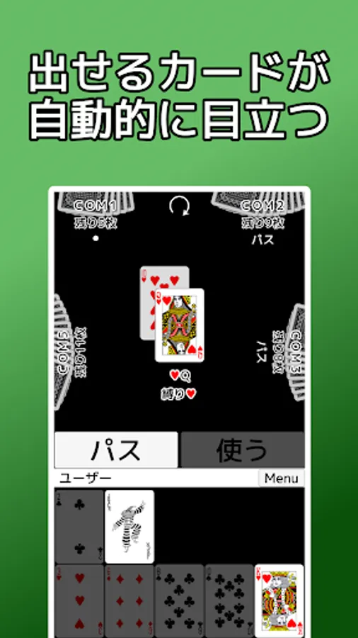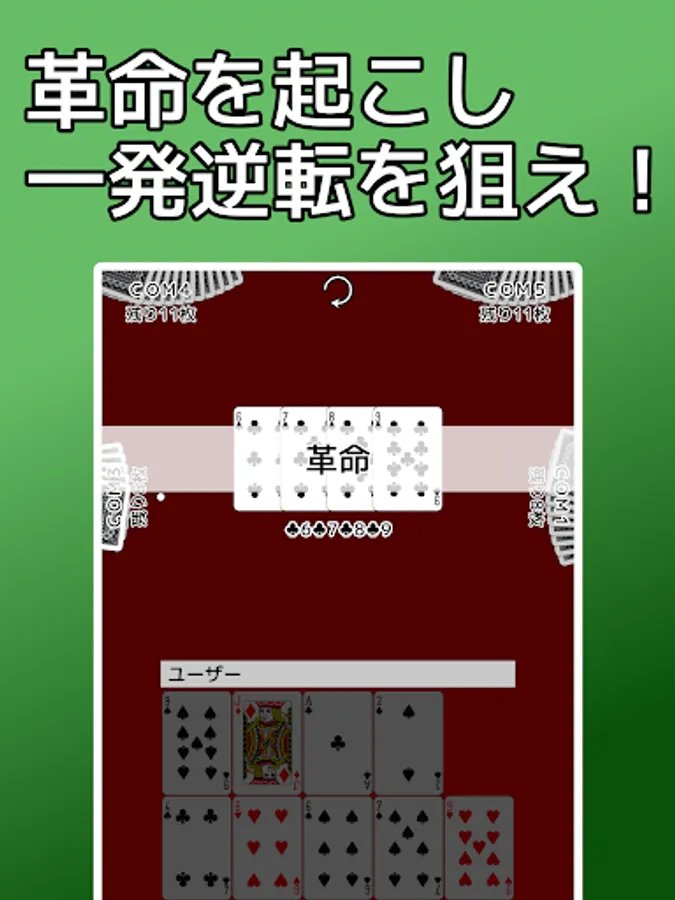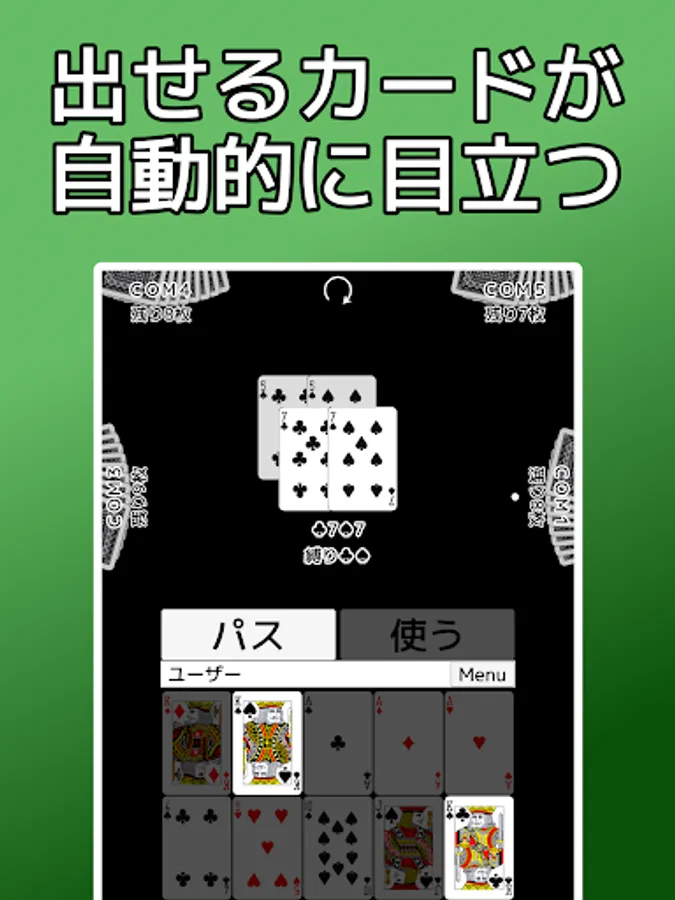 The goal of the game is to get rid of the dealt cards as quickly as possible. We will put out something stronger than the card put out on the field. Depending on how you put out your pass and cards, you can enjoy a strategy that overturns the superiority of your hand.