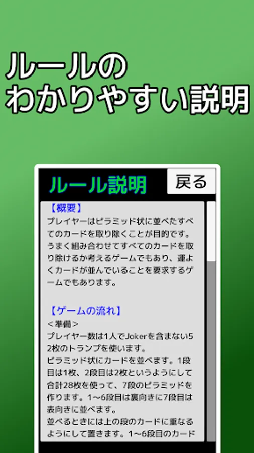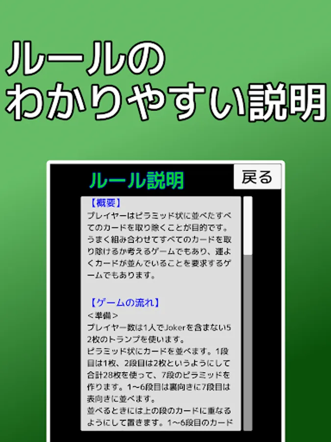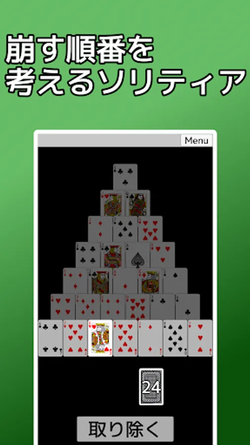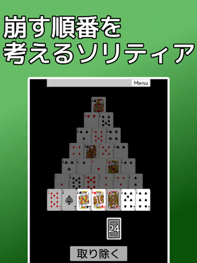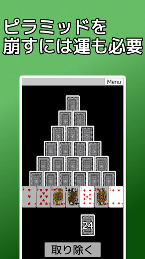 It is an application that you can play the card game solitaire "Pyramid". It is also called 13 rows.