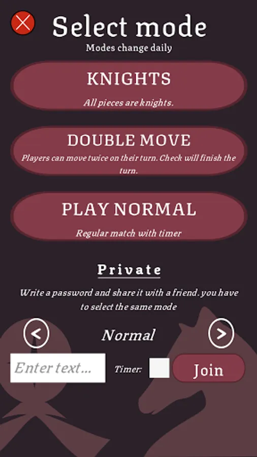 In Chessy Rules! you can play chess with friends or with random people. Not only regular chess but with a wide variety of crazy modes such as a board full of paws, random starting pieces or double movement.