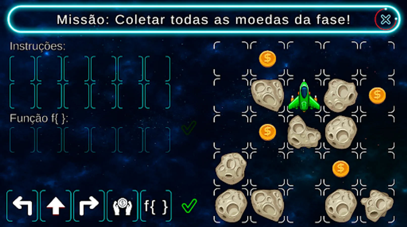 It is a game focused on logical reasoning. Where you must give instructions for the ship to be able to collect all the coins of the phase respecting the limit of instructions available.