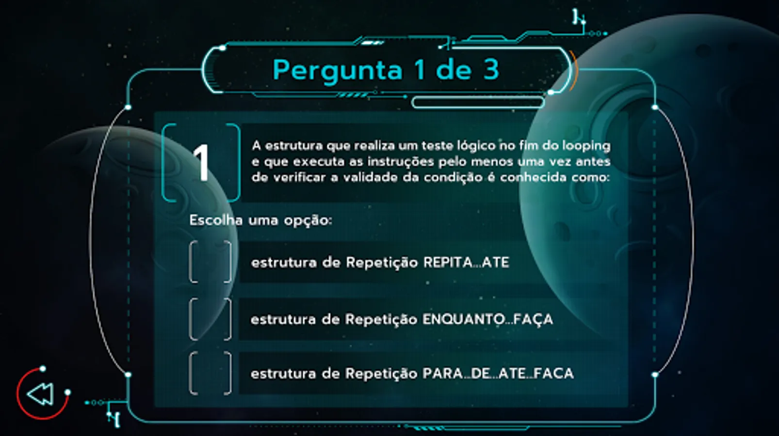 Join this journey towards knowledge with the game Nave do Algoritmo.