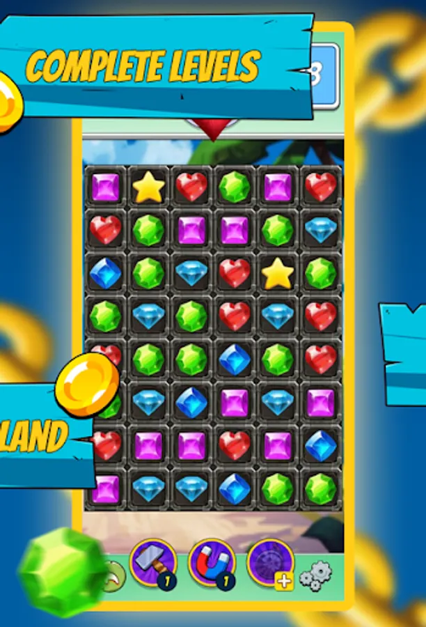 Embark on a fun and magical adventure in this addictive match-3 puzzle game! Discover the secrets of the enchanted island as you play through dozens of challenging levels. Solve puzzles by matching colorful and whimsical symbols and unleash power-ups to blast through the toughest obstacles.
