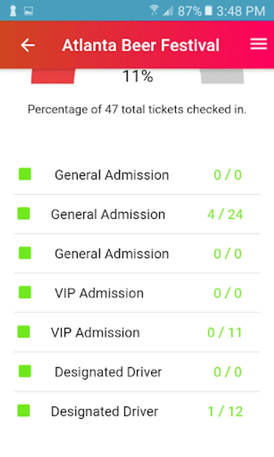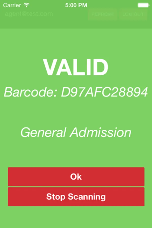 If the ticket is valid, the app will display a 'VALID' message. You can color-code your messages for different price types. For example, you can set your General Admission tickets to display a green valid message and your VIP Admission tickets to display a purple valid message.