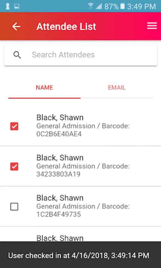 Using the camera on your device or an optional Linea Pro Barcode Scanner, you can scan the barcode on tickets presented at the entrance to your event or venue. The app scans the QR code to make sure the ticket hasn't already been redeemed.