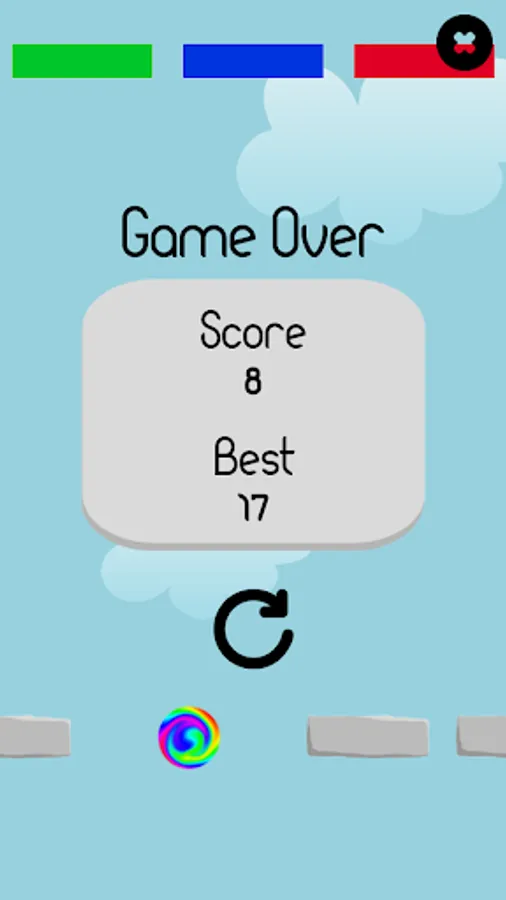 Try to go through the gate that match your balloon color. Hitting a different color will end your game. Gates will appear randomly in three different colors: red, green, blue (RGB).