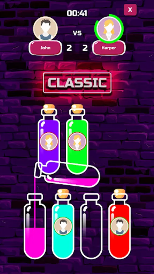 Liquid Sort Puzzle is an addictive online puzzle game! All you need to do is sort the colored liquids in the bottles. A challenging yet fun game to exercise your brain and chill out :)