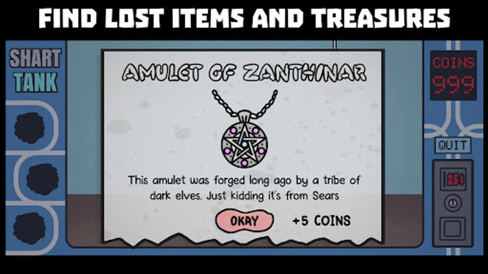 Search through the sewage in vintage grabber-machine-style gameplay. Find lost treasures and other junk, including questionable celebrities, lost pets, and rare memorabilia. Collect 3 Golden Nuggets to win a prize. But watch out for the Sharts; they will steal your nuggets and embarrass you.