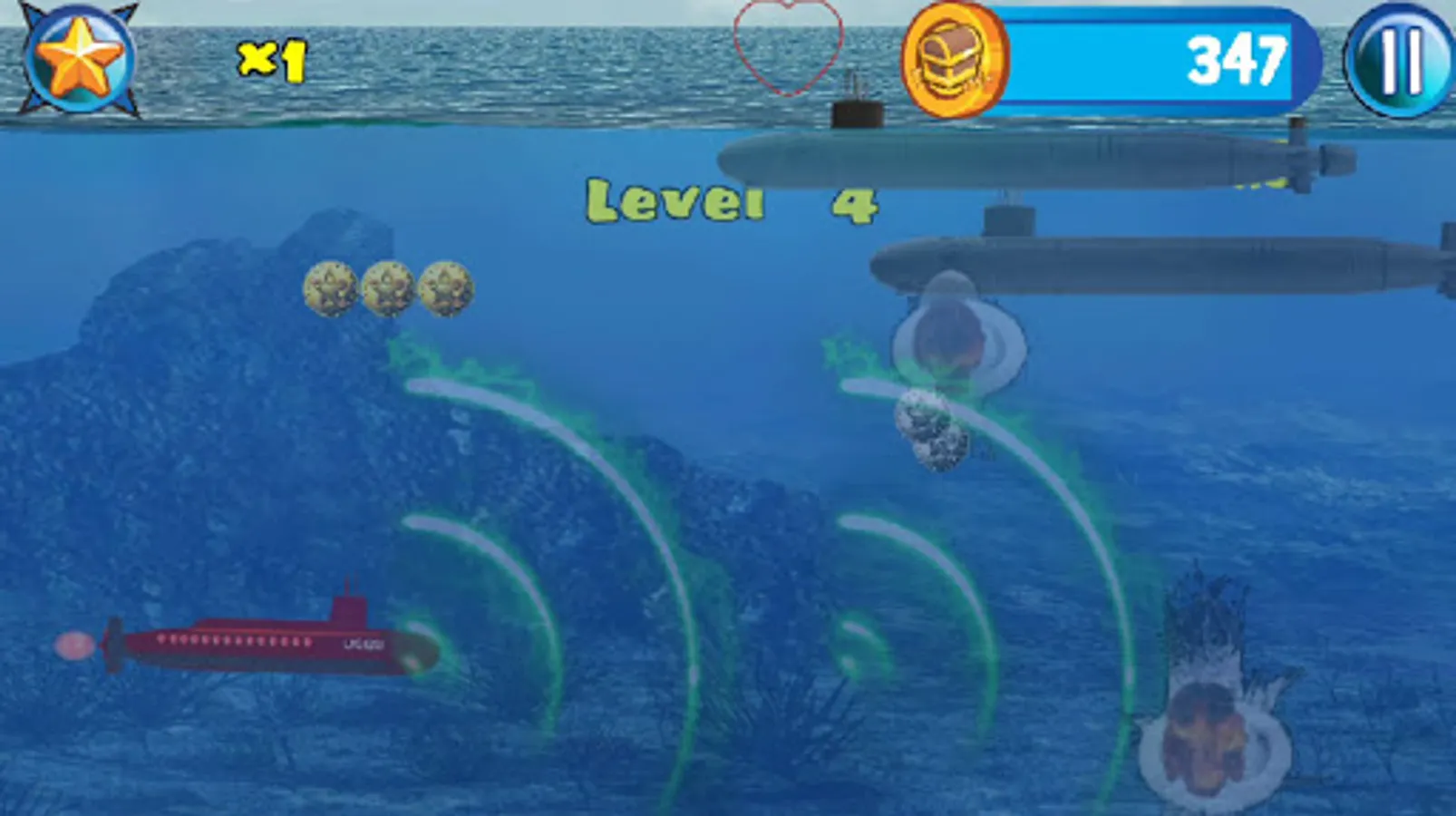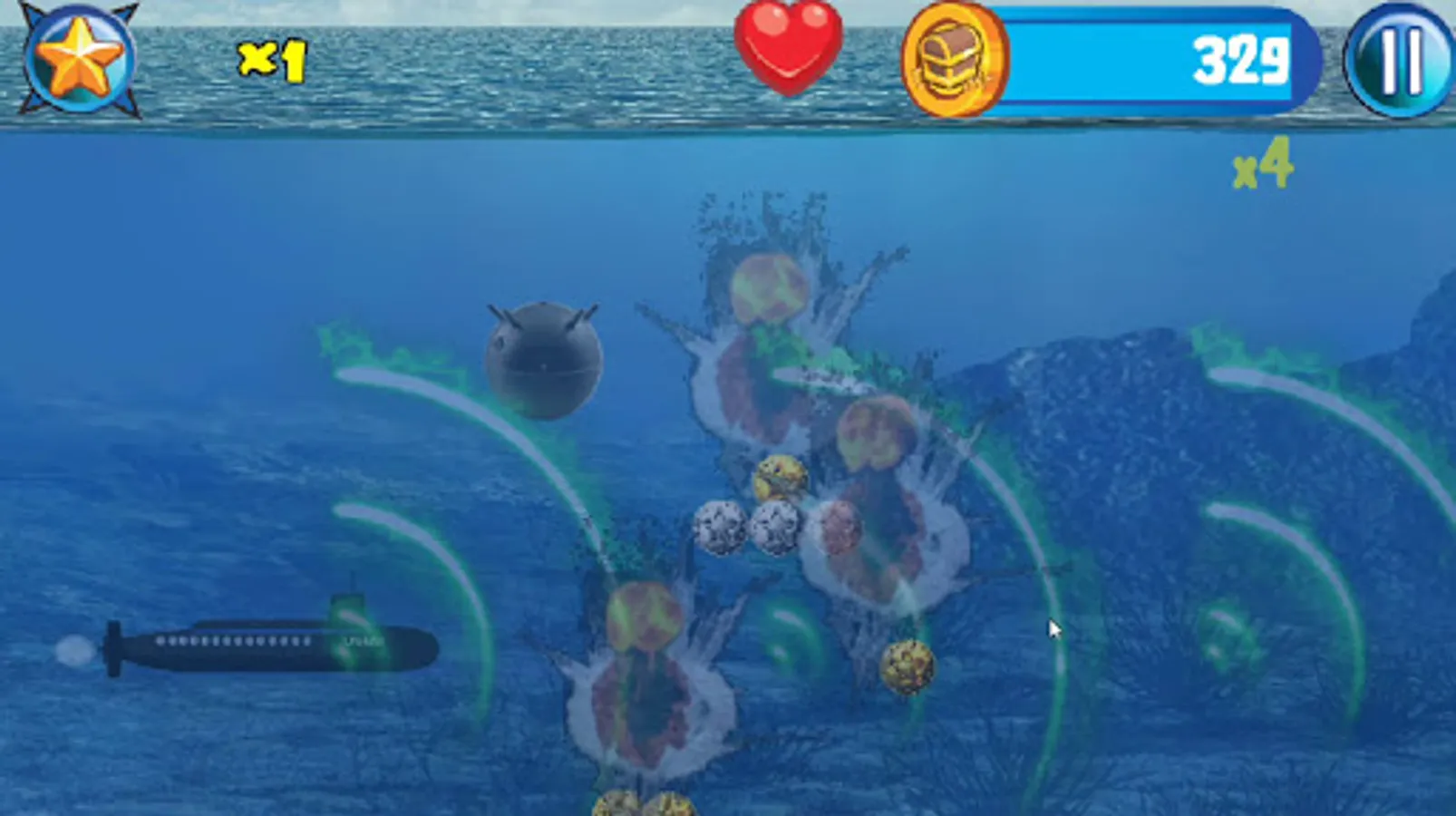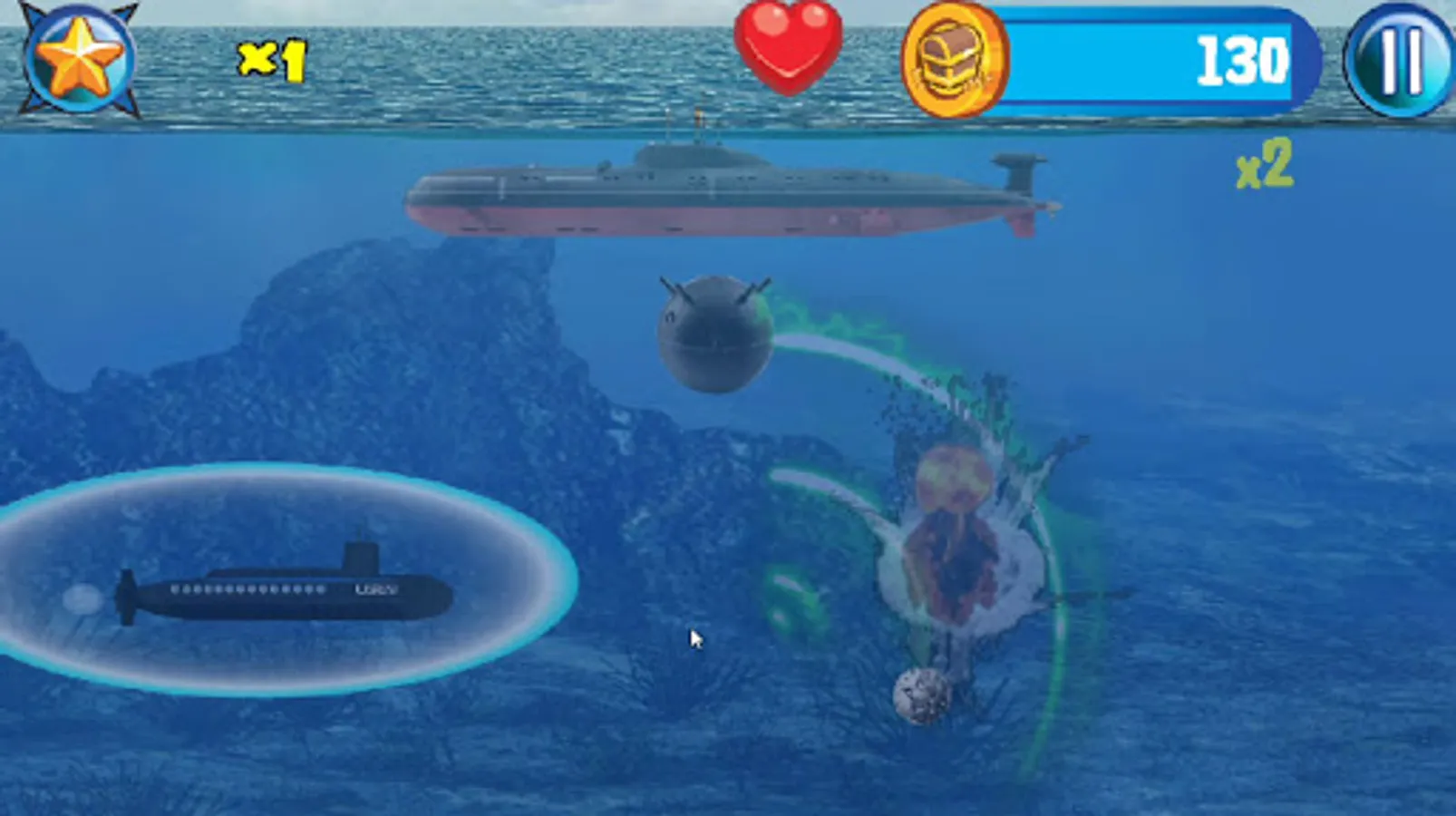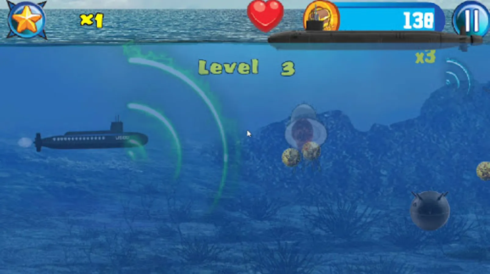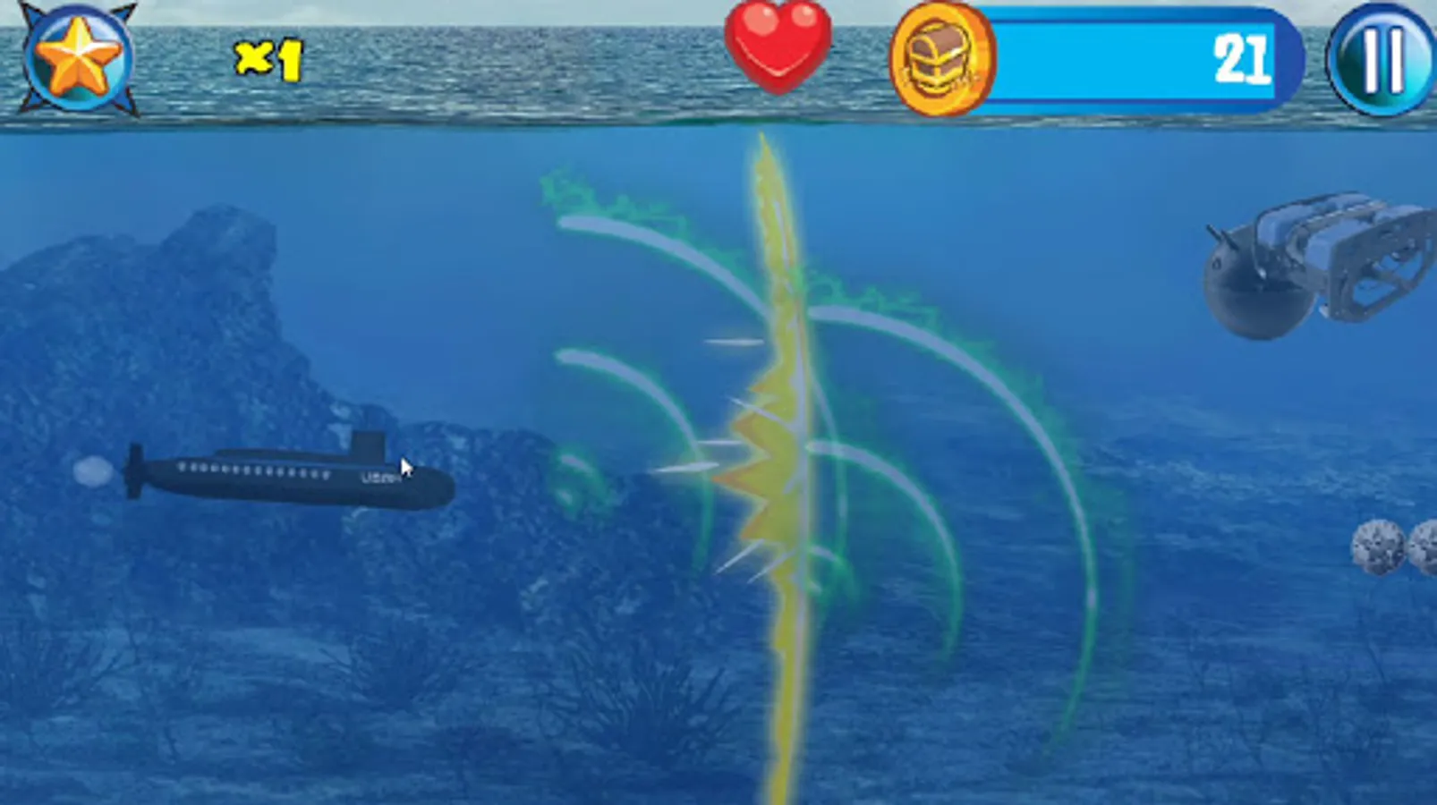 Captain Wanted! In this military navel warfare game you play a submarine captain battling Akula class submarines and battle sea creatures like a giant monster ink spitting octopus, Navigate trying to avoiding sea mines and being imploded in this underwater world war II deep sea action endless side scroller.