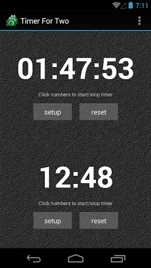The active state of both timers can be toggled with a quick menu selection, the running timer will pause, and the paused timer will run.