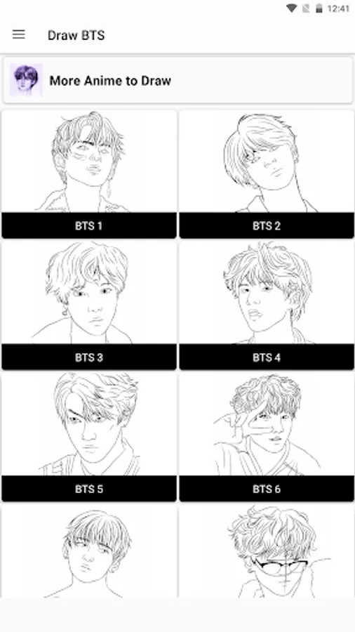 How to Draw BTS Idols is an application containing easy anime drawing tutorials. There are lots of tips for learning to draw for beginners, you can follow step by step drawing and coloring anime characters.