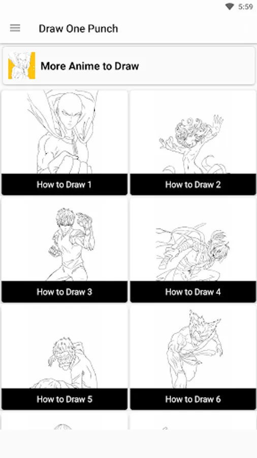 How to Draw Saitama One Punch is an application containing easy anime drawing tutorials. There are lots of tips for learning to draw for beginners, you can follow step by step drawing and coloring anime characters.