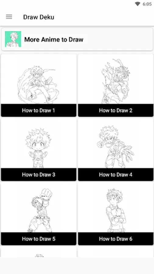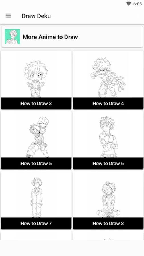How to Draw Deku From Hero Academia is an application containing easy anime drawing tutorials. There are lots of tips for learning to draw for beginners, you can follow step by step drawing and coloring anime characters.