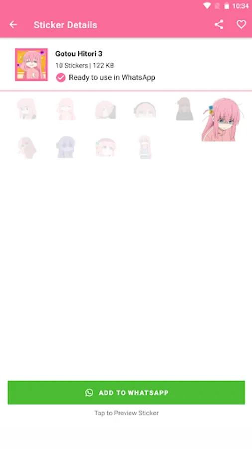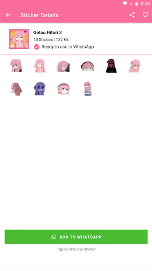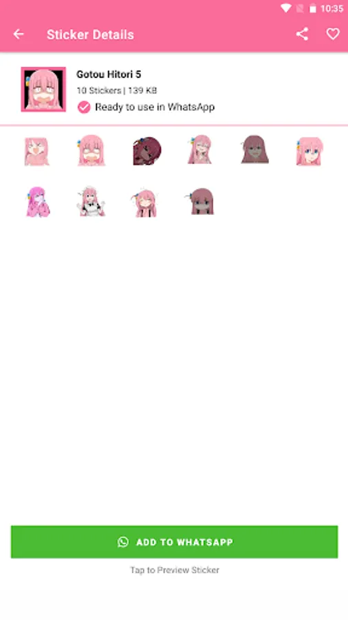 This app provides a collection of stickers from the popular anime Bocchi the Rock! Featuring cute and charming characters, these stickers will add a fun and unique twist to any conversation. With a variety of expressions and poses, you'll be able to find just the right sticker to fit your message. Whether you want to let someone know you're thinking of them, or just inject some fun into a chat, these stickers are sure to brighten anyone's day. With a fun and vibrant design, these stickers will be sure to bring a smile to your friends and family's faces.