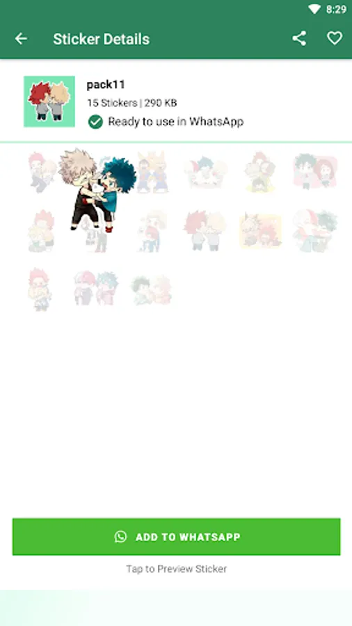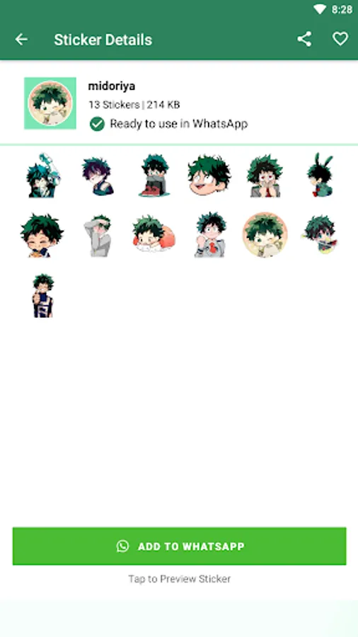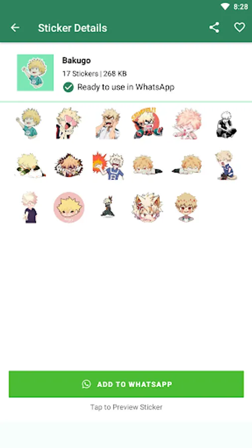 Boku no my hero Stickers for WSP is a sticker app that contains cute Chainsaw Man stickers from the Anime Hero academia.