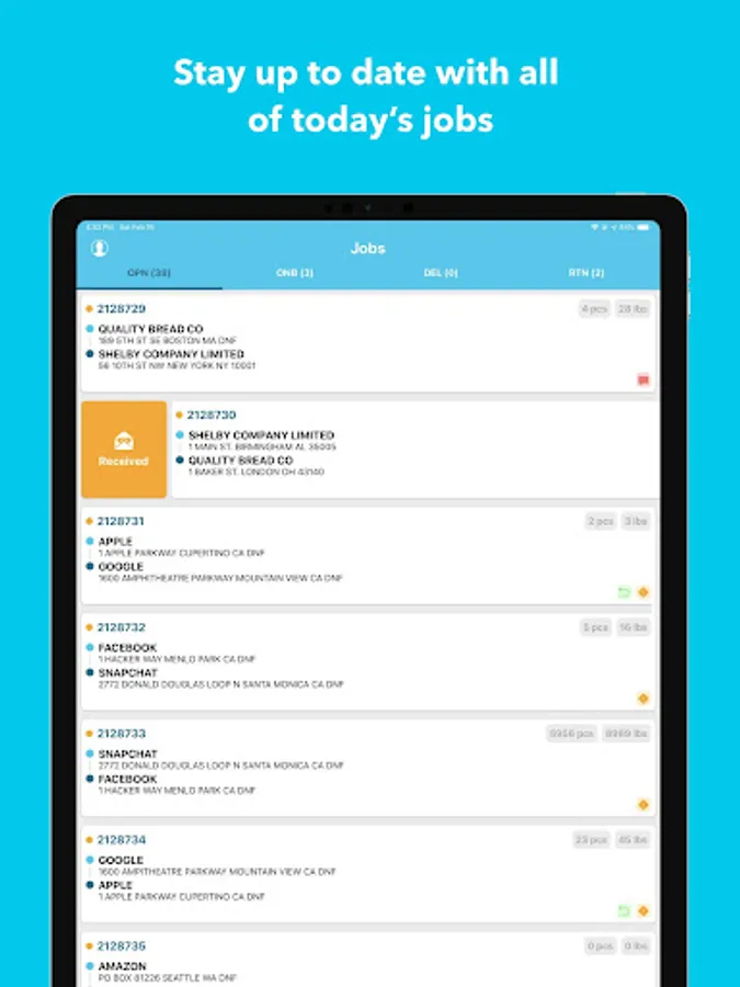 React to changes in the field. Allow drivers to upload pictures or update packages in the field, and update a job's pieces and weight, all from their mobile device.