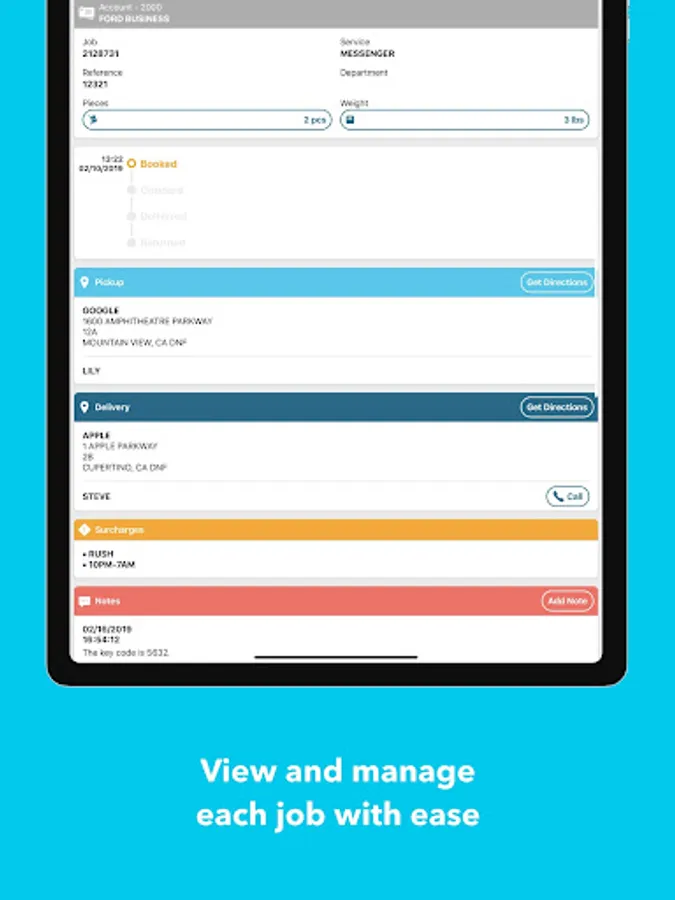 Integrating with your backend system allows you to keep your drivers up to date with the details of each job.