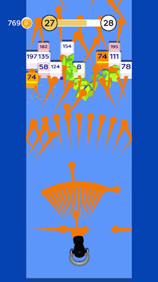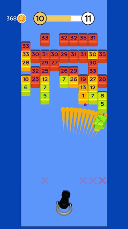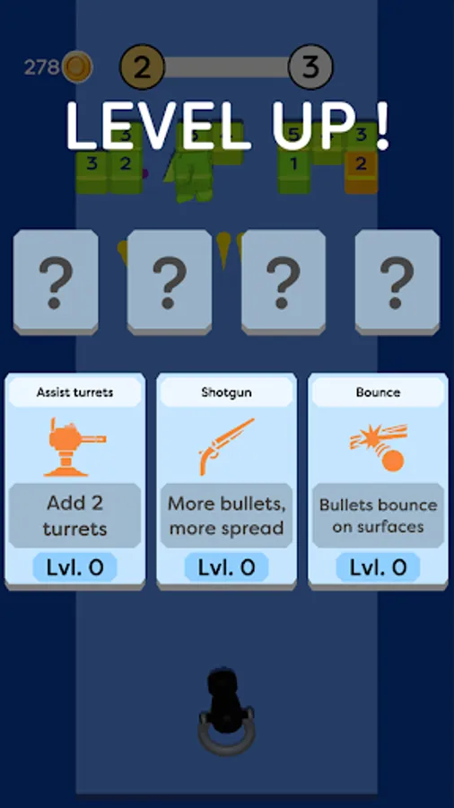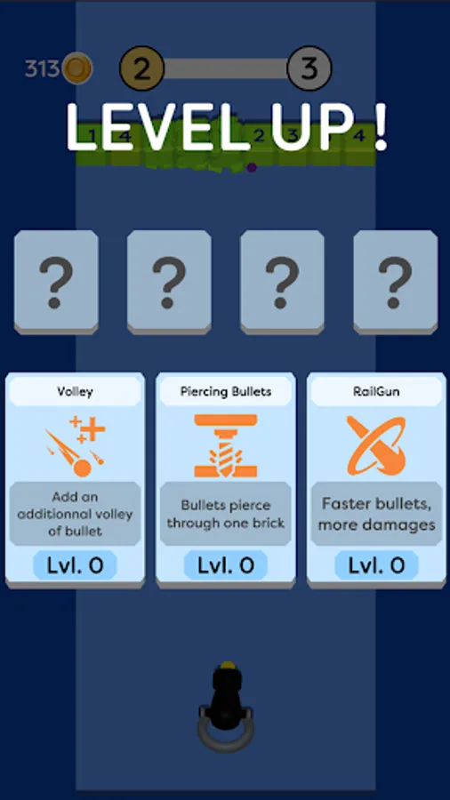 Enhance your attack speed, your damages, the number of bullet shot or even add special effects to your bullets to destroy all the bricks coming at you.