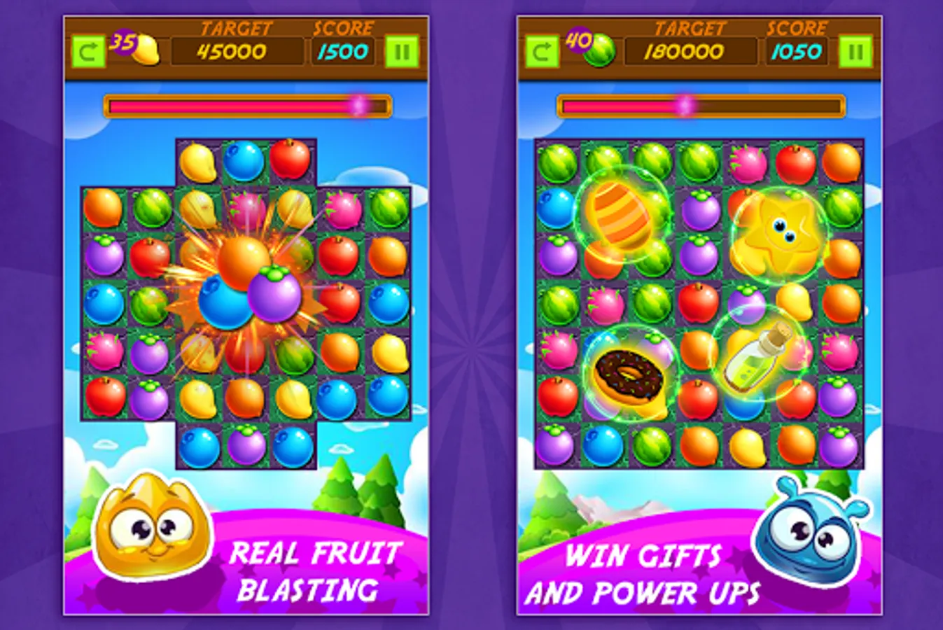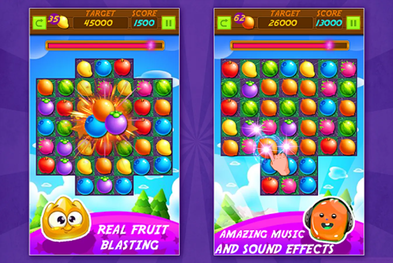 • Crush smash and blast the fruits with special bonuses like in camdy crush that helps you to pass difficult levels