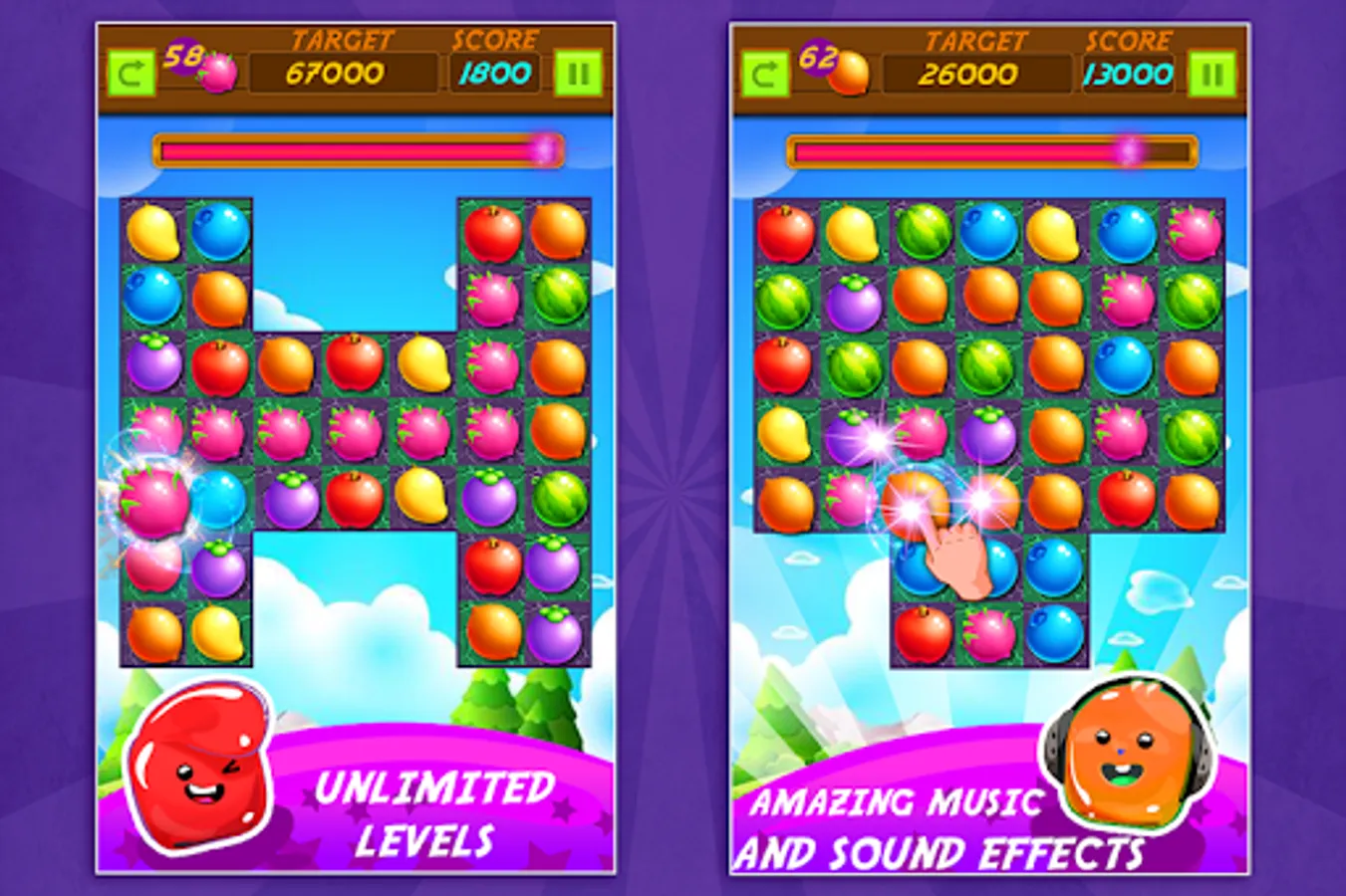 If you are getting bored then fruit candy frenzy is a brand new connect Fruit puzzle game that brings you to the colorful and tasty fruit candy for adventure. Connect three or more fruits of the same type to make a blast. Like many games have jelly splash this has more colorful fruits. Fruit candy frenzy is the latest and coolest match three-crush games for your smartphone. Swap three or more fruits to win and advance to the next level in jelly juice.
