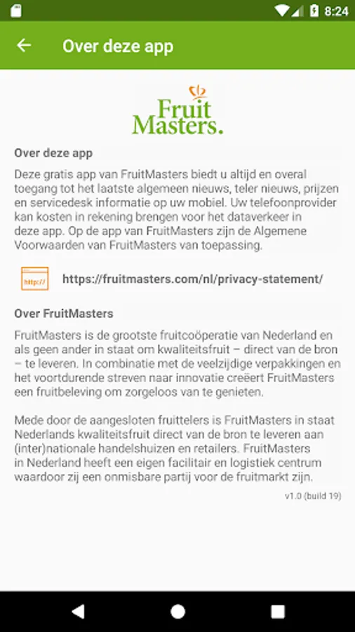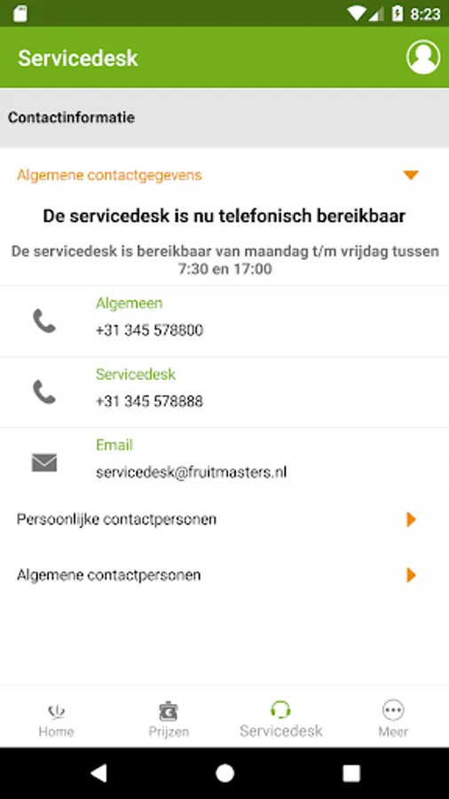 MijnFruitMasters can be reached free of charge anywhere with this FruitMasters app. The latest news, my messages, prices and information from the service desk directly on your mobile device.
