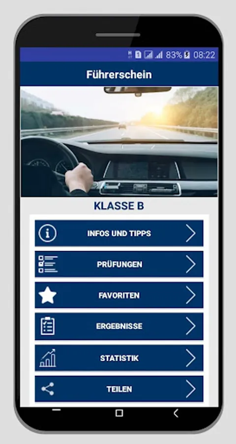 Driving license class B is an innovative test program for the driving license test for Android smartphone with over 1437 current practice questions.