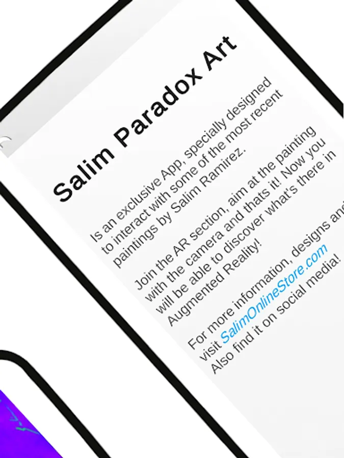 Is an exclusive Augmented Reality App, and specially designed to interact with selected artwork by Salim Ramírez.
