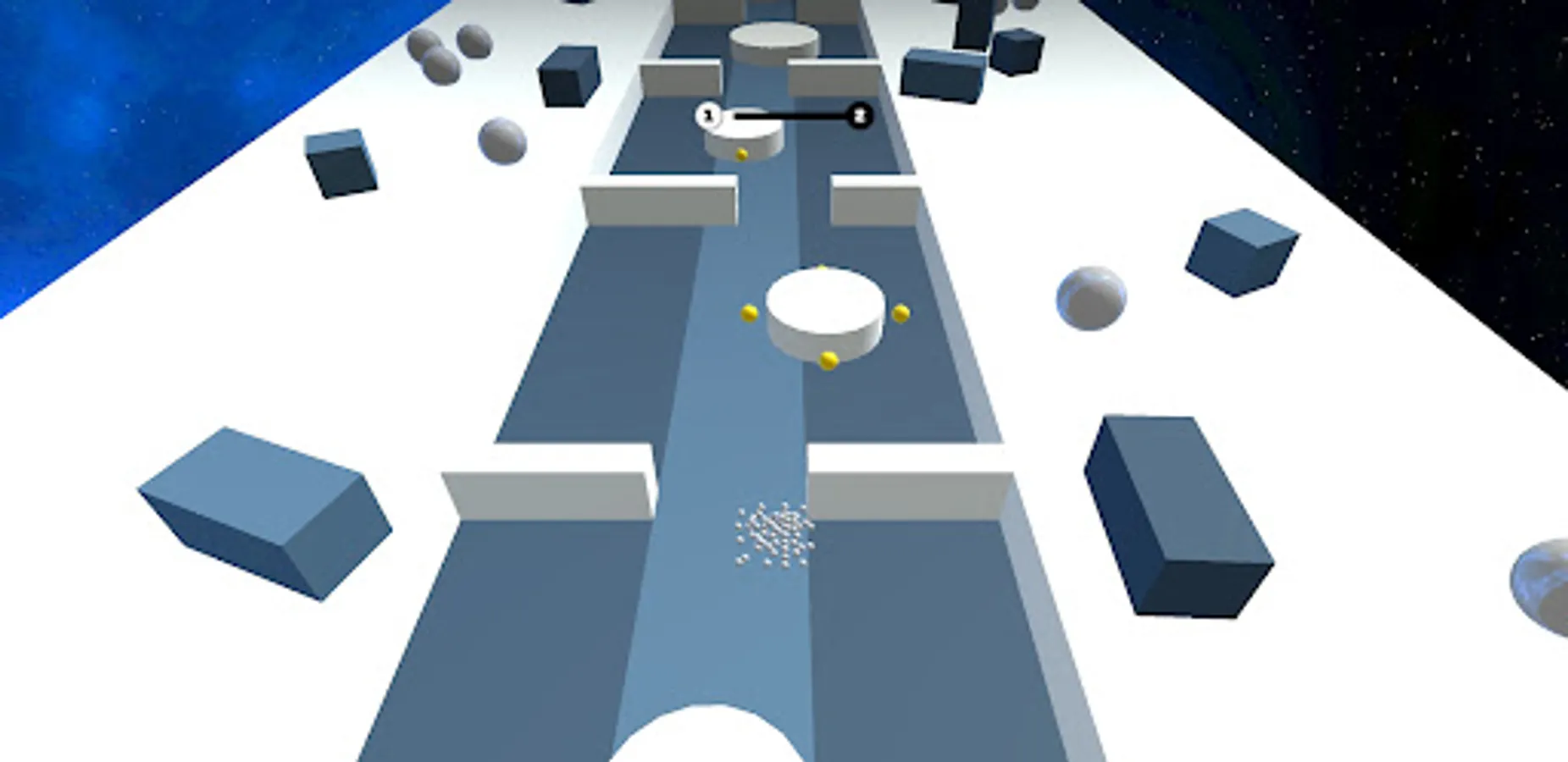 Tap the screen to shoot the ball though the obstacles avoiding everything other than the rotating center pillars. How far can you get??