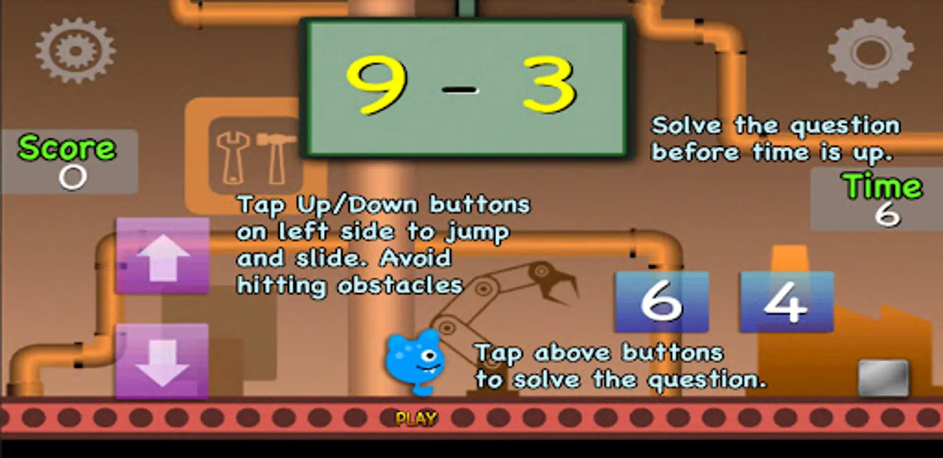 In this game have fun solving addition, subtraction, and multiplication problems while dodging oncoming objects. The goal is to do better each time you play going farther and farther to more difficult problems. There is a time limit so SOLVE FAST!