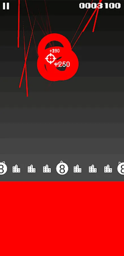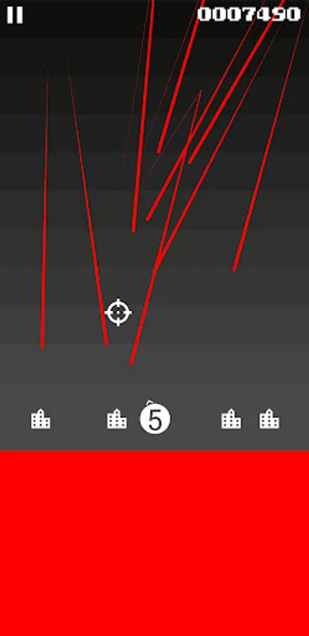 In this game slide your finger or thumb on the red, rectangular trackpad at the bottom of the screen to move the target. Double tap to fire. Defend the home bases at the bottom of the screen from incoming red projectiles