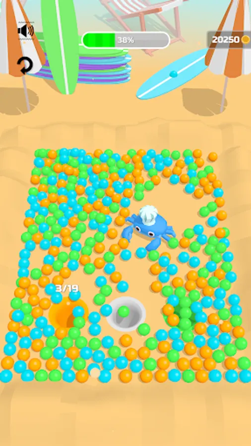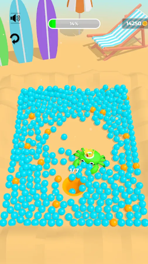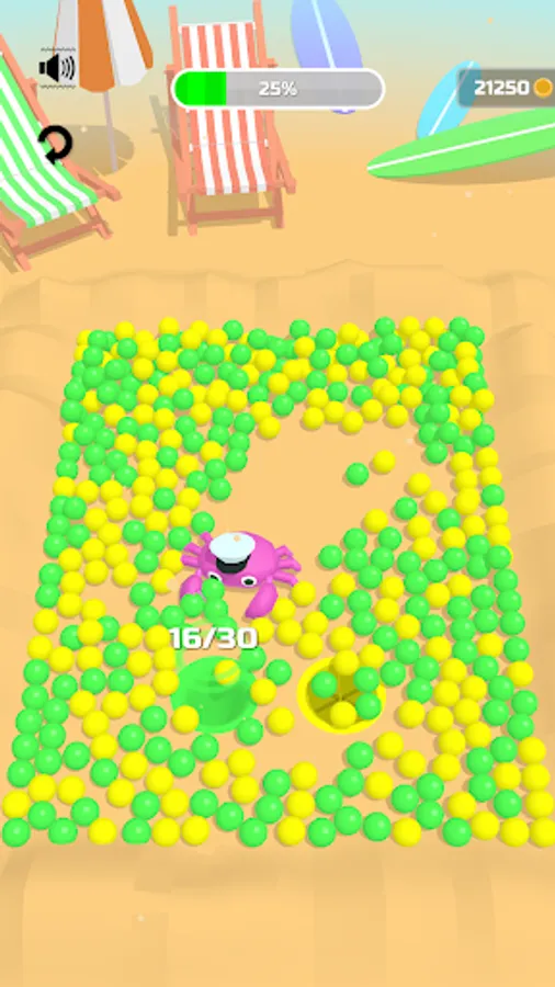 Use the crab claws to redirect the balls you have choosen, place them in the right hole to finish or even to open new ones.