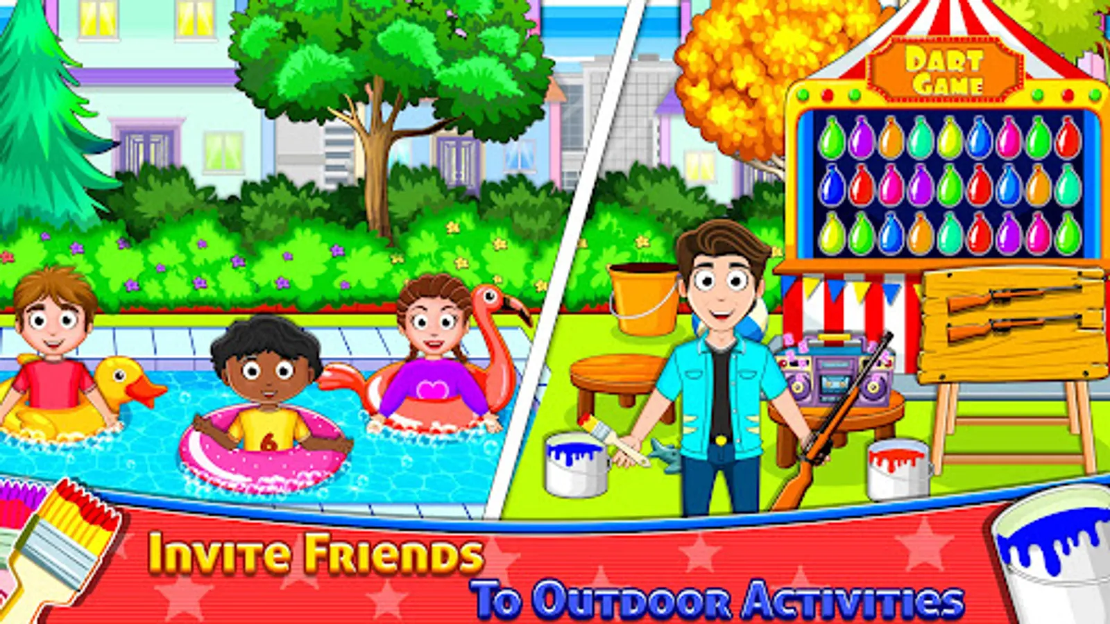 The weekend is going to end, this is a perfect time for sleepover fun and reuniting with town friends. Don't worry if you can't stay for real or if your parents not allowing you to stay with city friends. Introducing you to my friends avatar city life the city night party game and late night fun activities. Playhouse games like this is the sign for a bbq house party because the night is young. So be ready for the slumber party, cook dinner after calling your close friends and serve them a delicious meal in this slumber party house game. Explore each part of this open avatar world game from city hotel to town hospital and city airport.