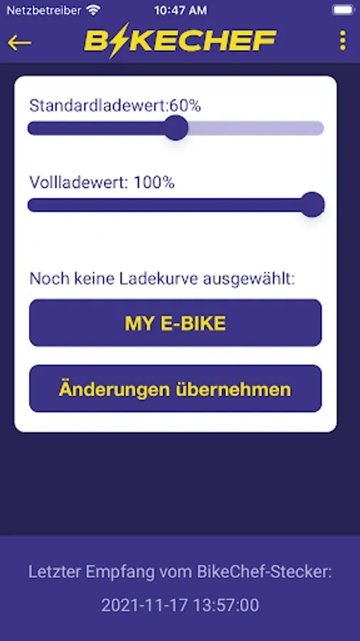 This app is used to operate the BikeChef connector from FunEnergy Innovations. This allows you to monitor the charge status of your battery and charge it specifically. The aim is to keep the time in which the battery is in a poor state of charge (less than 20% or more than 80%) as short as possible. And yet you can restart the charging process of your battery from anywhere. So nothing stands in the way of a nice e-bike tour.