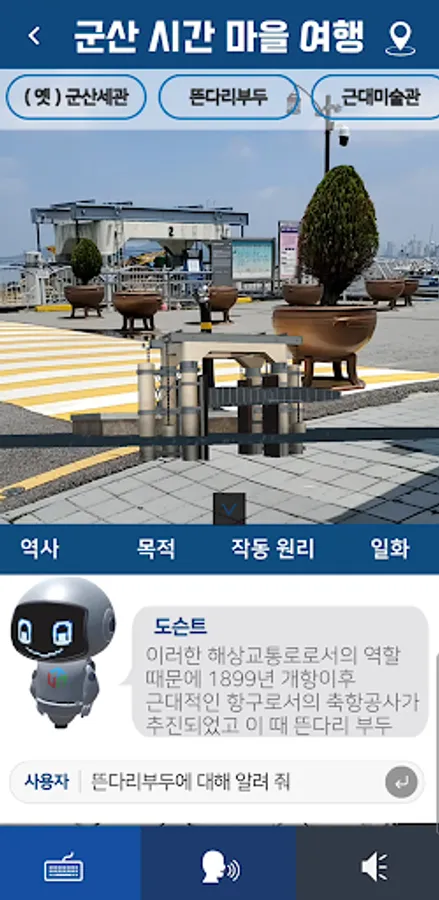 -Gunsan Time Village Tour: Chatbot Docent introduces Gunsan Customs, Floating Bridge, Modern Art Museum, Grassland Photo Gallery, and Dongguksa Temple.