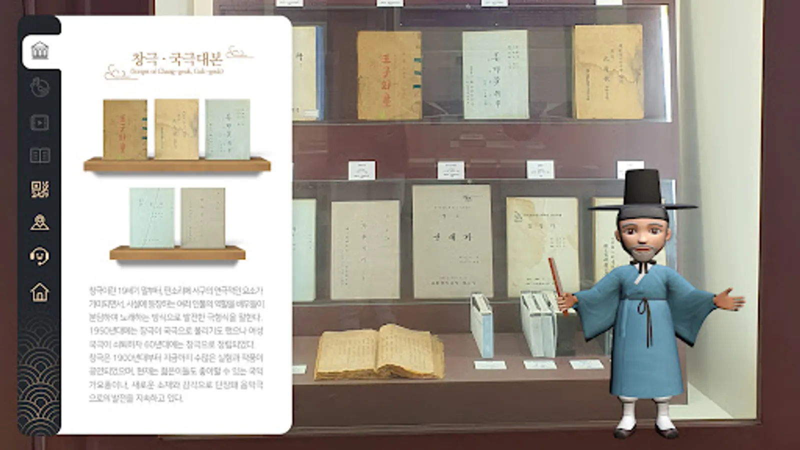 고창판소리박물관의 전시물에 대한 설명과 소장 음원 및 멀티미디어 감상, 여섯마당 사설본 열람까지!