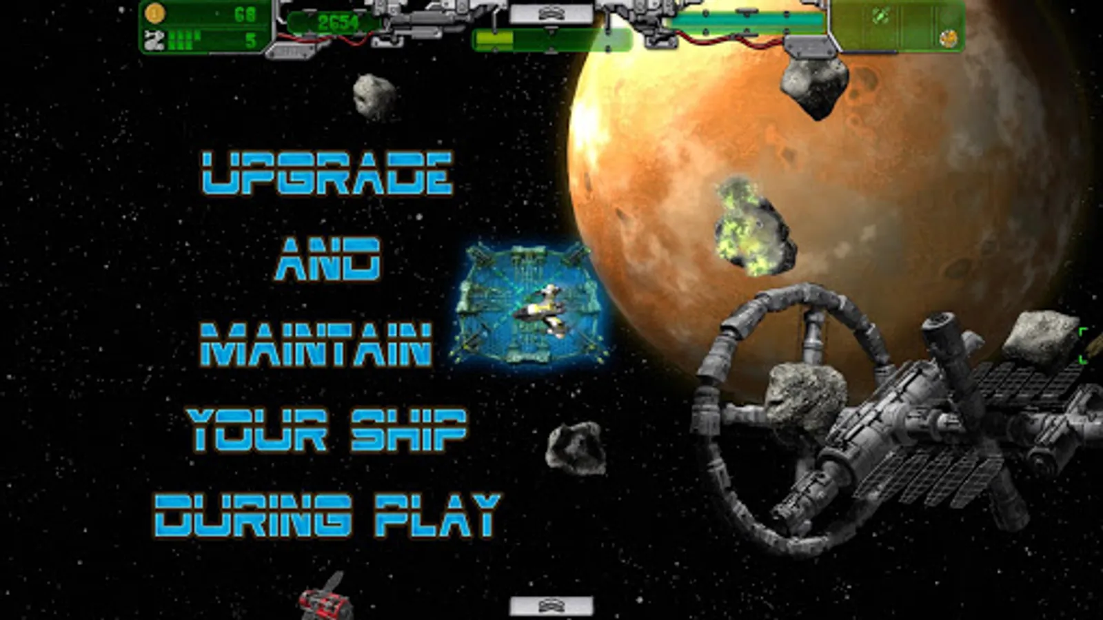 • Tiered upgrade system. Buy or Research new technology to upgrade your ship.