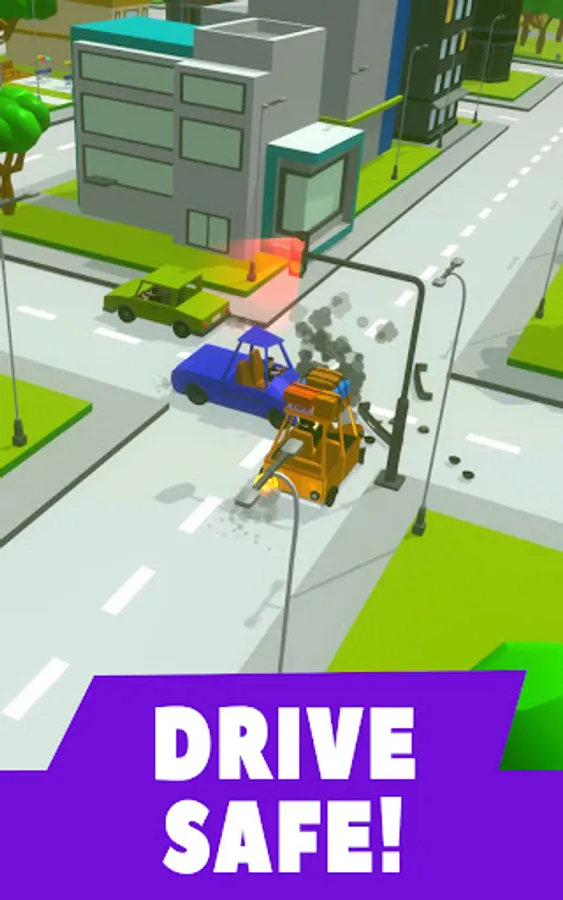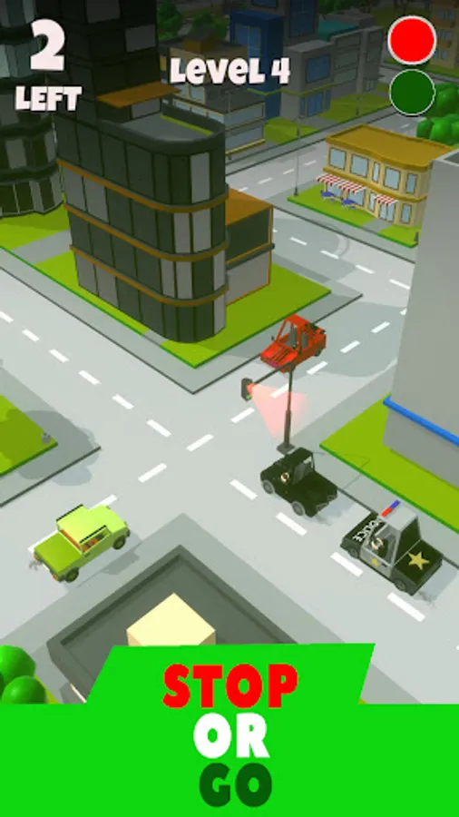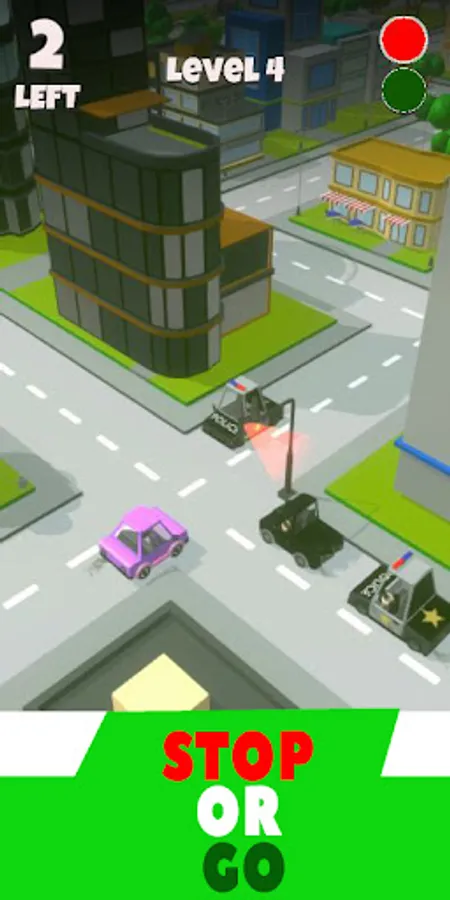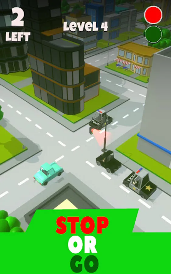 Manage traffic lights and prevent cars from colliding. When vehicles need to stop, tap the screen and the traffic light will turn red so you don't crash into the oncoming vehicle. When roads are clear, tap the screen and the light will turn green. Wroom wroom!
