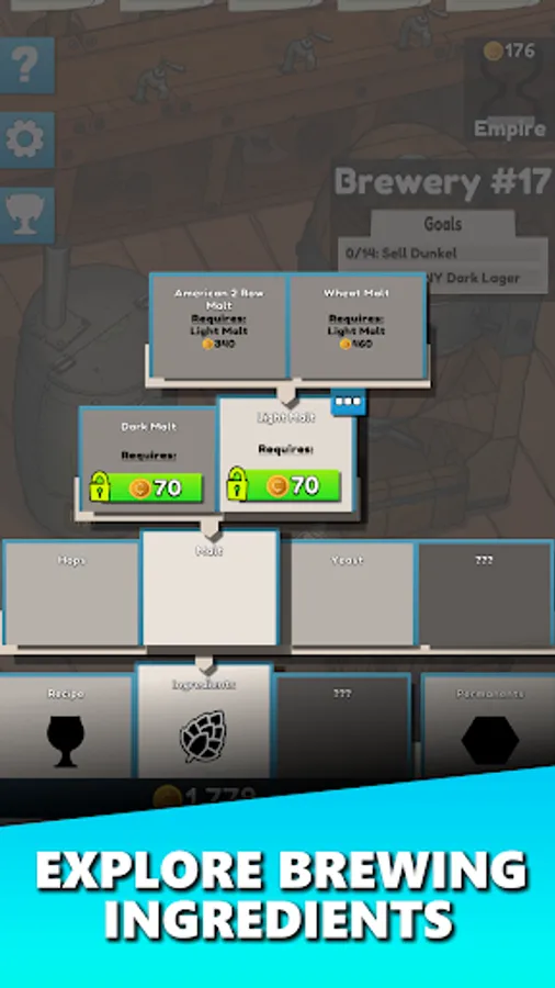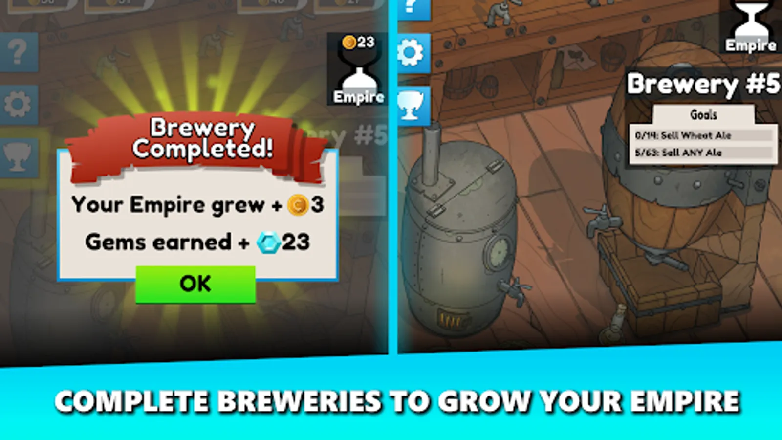 Optimize your brewery for the fastest growth possible. Eventually your brewery will reach it's full potential, and it's time for you to open another one. Keep repeating to grow your brewery empire. Each new brewery brings new discoveries and passive income.