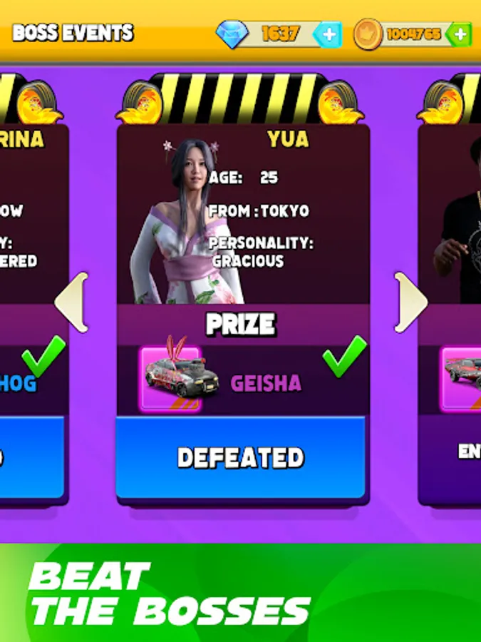 From New York to Moscow, from Tokyo to London, dozens of different bosses are waiting for you in their regions. Yua is a tech genius while Baby Bill is the streamer. Can you beat these tough opponents? Defeat your opponents one by one, take their cars, expand your collection and challenge even more bosses. All cars are waiting for you, capture them.