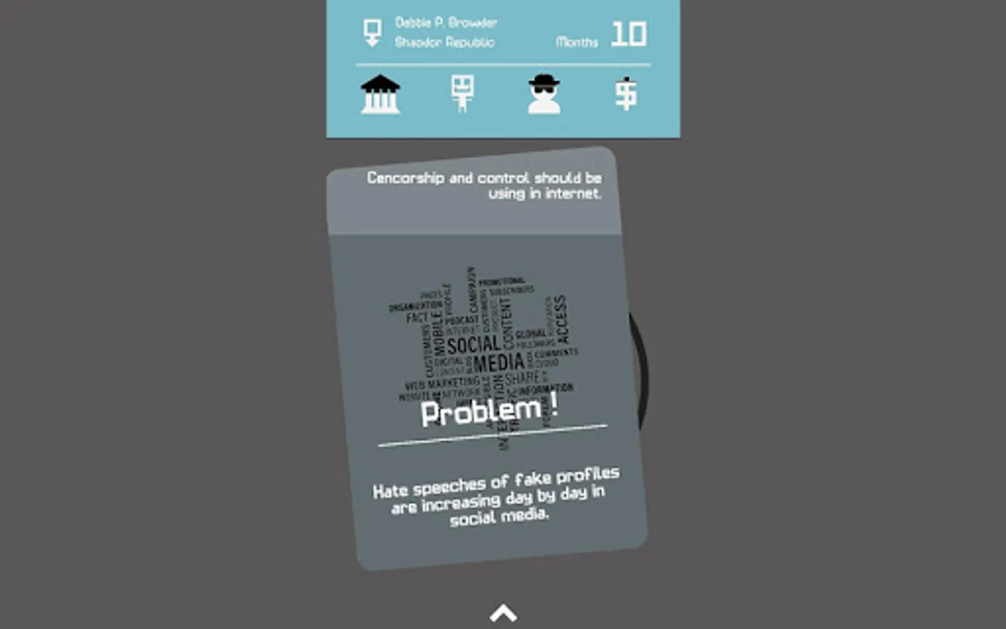 Give direction to the agenda and our struggle with your comments about the Shaodor Republic. We're experiencing internal turmoil and crisis. Swipe the cards left or right to comment about events that come to you from your reporters and assistants. Be careful. The words you speak have never been so important.