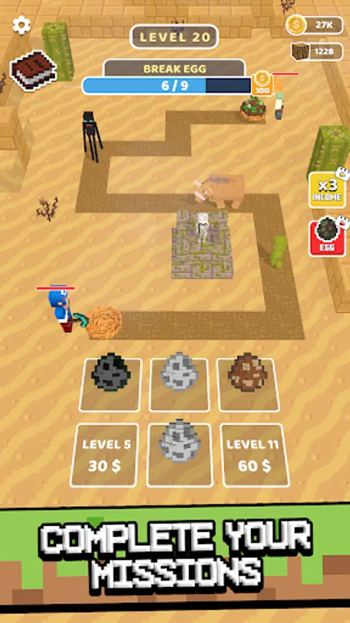 Idle Craft and merge eggs to create an army of mighty monsters that will aid you in defending your base from impending threats in Building Games. The future of this cube world rests upon your ability to strategically merge eggs and create stronger beings in Idle Craft Merge Adventure. 🐣