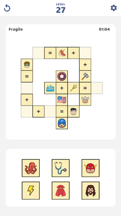 In "Pop Maths," pop culture icons replace numbers! Solve puzzles by combining emojis to form characters, movies, and more. Find the right combinations to advance to the next level.