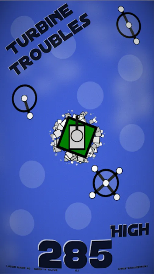 Society thrives thanks to nearly unlimited power generated by GIANT TURBINES in the sky... Turbines DEGRADE over time. It's your job to keep them WORKING. Use the Robo-Launcher 2034 and see how long you can keep the turbines alive!