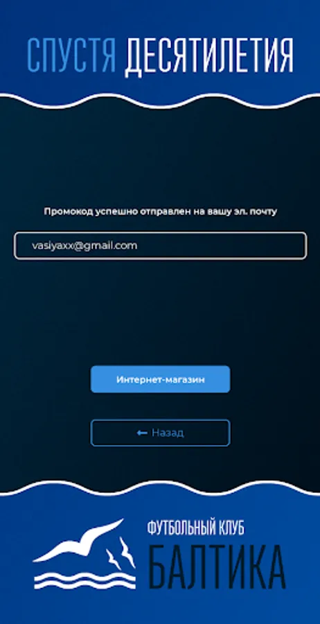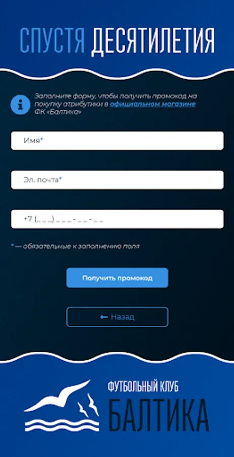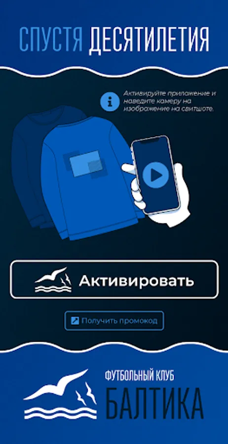 Using the application, get a special PROMO CODE for the entire new collection "Decades later" at https://shop.fc-baltika.ru