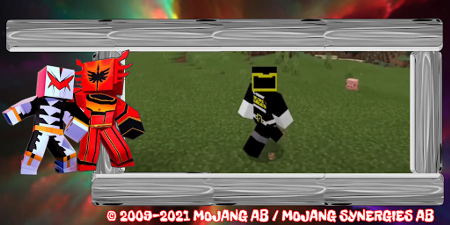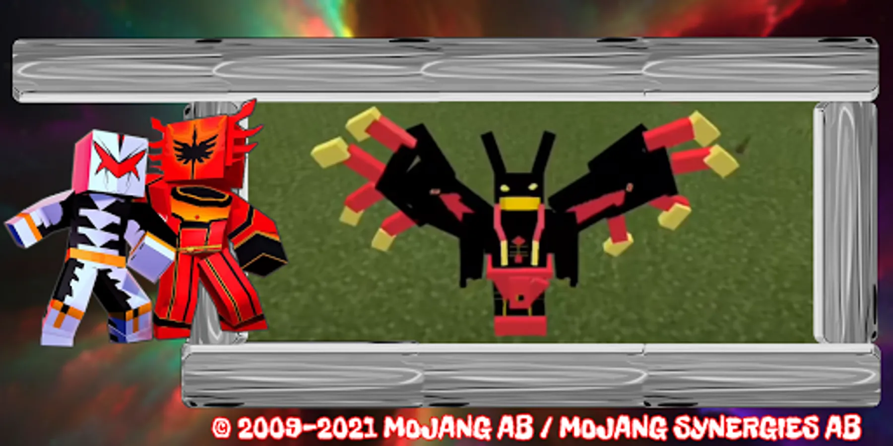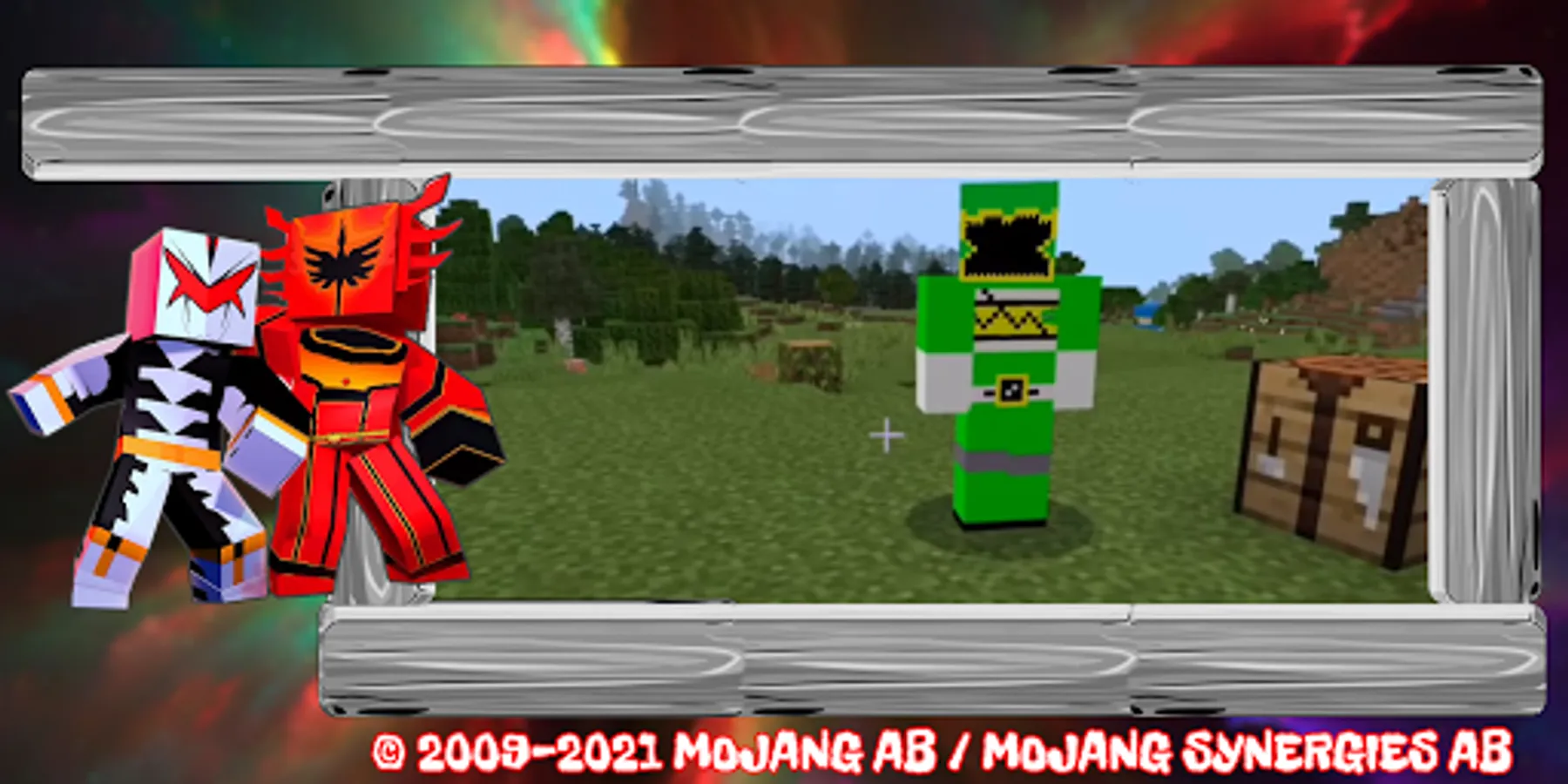 The addon can enhance both your character and randomly appearing mobs. In the open world, tokusatsu superheroes will randomly appear, six multi-colored creatures with increased flash speed, strength, teleportation and other pleasant bonuses. You and your friends up to six people can become rangers - heroes in costumes - to fight villains and monsters whose goal is to destroy the world and all biomes. You can also see mega monsters and various robots that take the form of animals and machines from oriental martial arts. Zords are rangers, they can transform and unite their power against evil. You can unite with ordinary NPCs and defend the world. Only powerful knights can defeat all evil mobs! Each suit has its own functions - water breathing, night vision, absorption and others. Popular superhero skins will make you the most visible in all biomes and on any map.